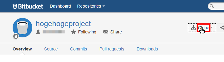 git clone git@bitbucket.org:username/hogehogeproject.git