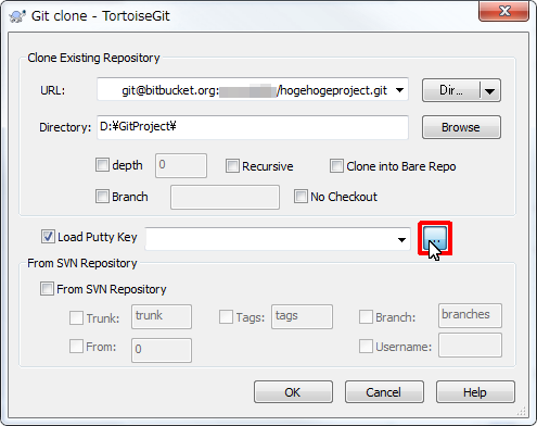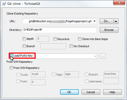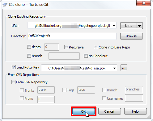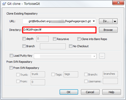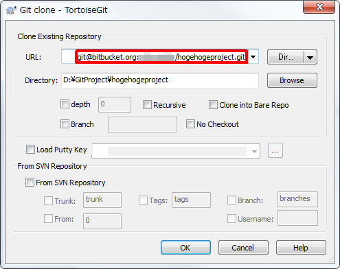 ※頭の「git clone 」はコマンドラインで使う際に必要な物なので、TortoiseGitでは必要ありません