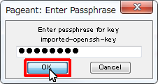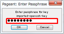 - OpenSSHの鍵を作成した際に設定したパスワードを入力します。