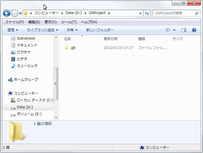 - フォルダに以下のようなマークが付き、フォルダ内には「.git」というフォルダが作成されます。