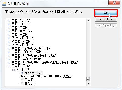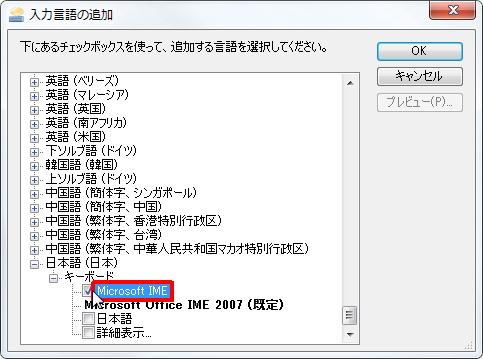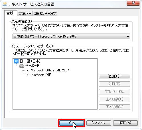 これでも直らない場合は、Office IME 2007 は使わずに Microsoft IME を使うようにします。