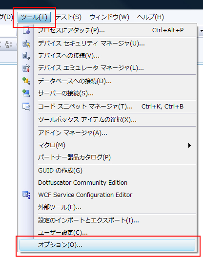 - ツールバーの[ツール(T)]→[オプション(O)]を押します。