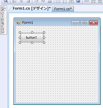 - デザイナを閉じてもう一度開くと、ウインドウに「GridSize」で指定したドット間隔の点が表示されているはずです。
