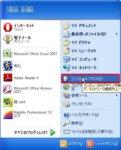 - スタートメニューの [コントロール パネル] をクリックします。