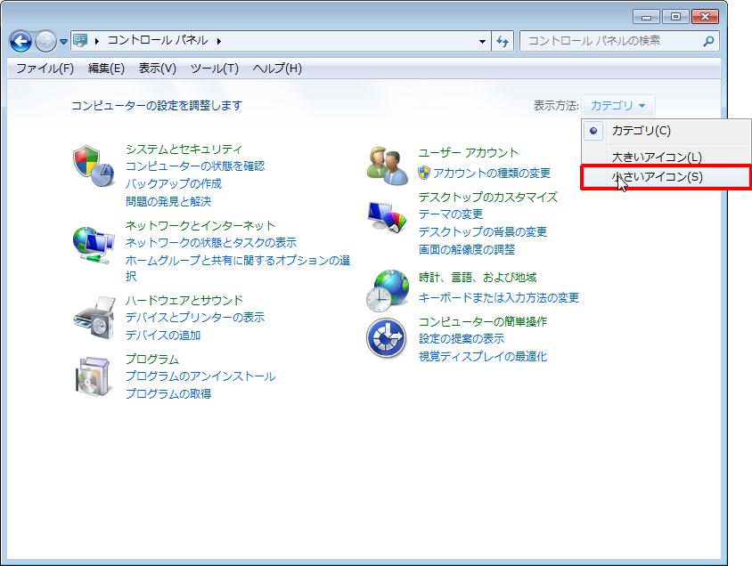 [コンテキスト] メニューの [小さいアイコン] をクリックします。