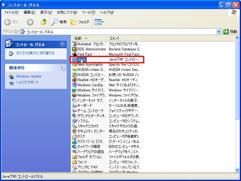 - [Java]又は[Java(32 ビット)]をダブルクリックします。