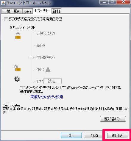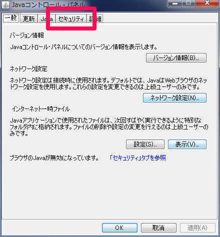 Java 7 Update 10 以降からは「Javaコントロール・パネル」の設定だけで無効化出来る様になります