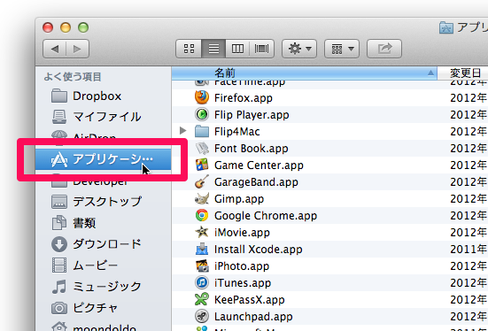 - 左側の[アプリケーション]をクリックします