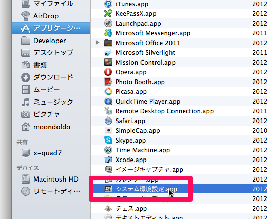 - [システム環境設定.app]をクリックします