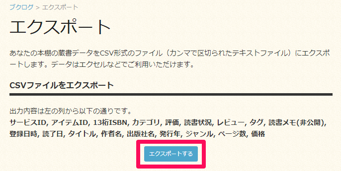 - [エクスポートする]ボタンを選択して、ダウンロードします