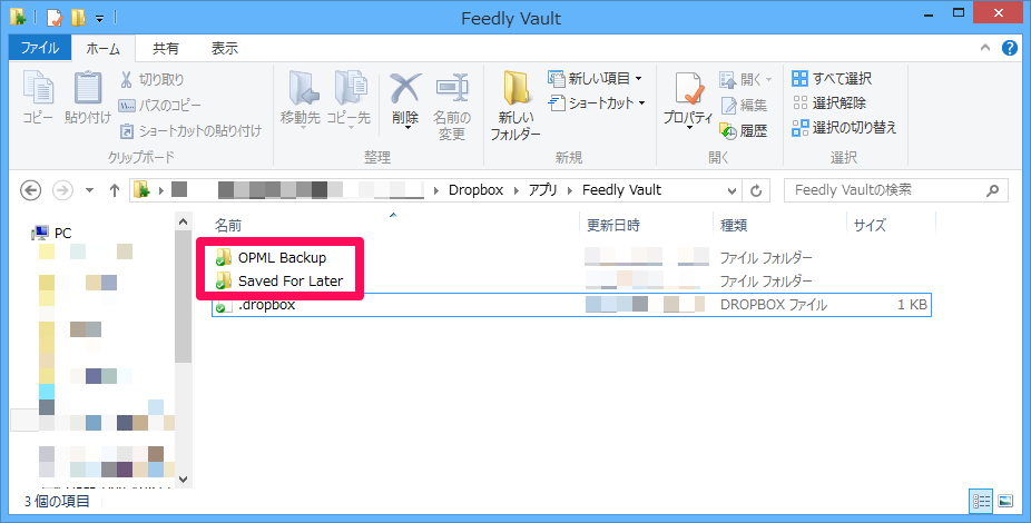 登録フィードのリスト(OPML形式)は、Dropboxフォルダの