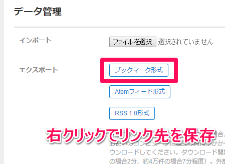 - [ブックマーク形式でダウンロード]を右クリック→リンク先を保存