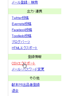 - ログのダウンロードの項の[CSV(UTF8)]と[XML(UTF8)]ボタンでダウンロードします