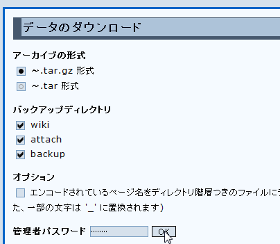 - 「管理者パスワード」を入力して[OK]ボタンを押します。