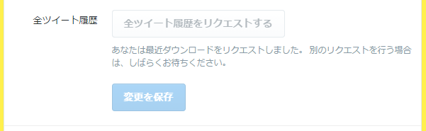 - 下の方にある[全ツイート履歴をリクエストする]ボタンを選択します