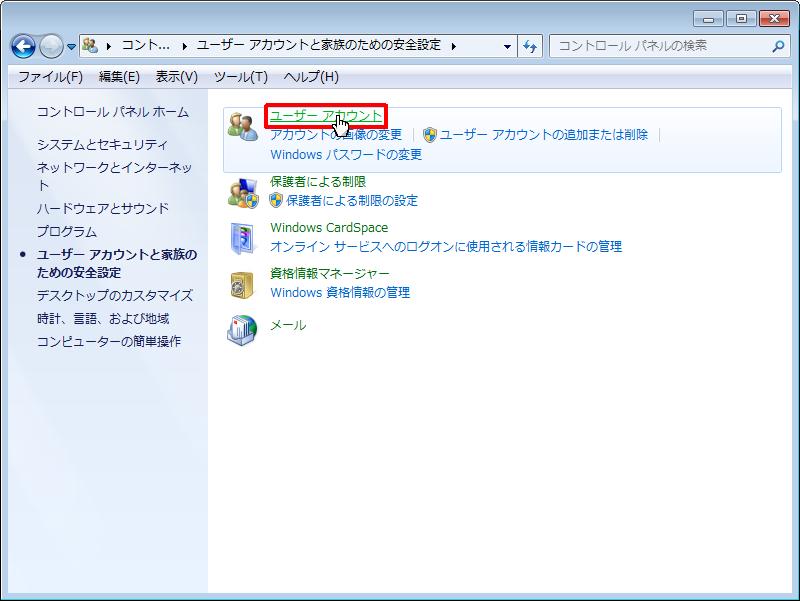 - [ユーザー アカウントと家族のための安全設定] リンクをクリックします。