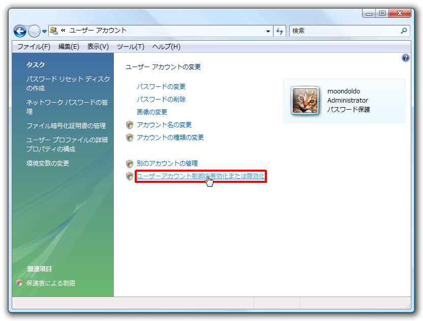 - [ユーザー アカウント制御設定の変更] リンクをクリックします。