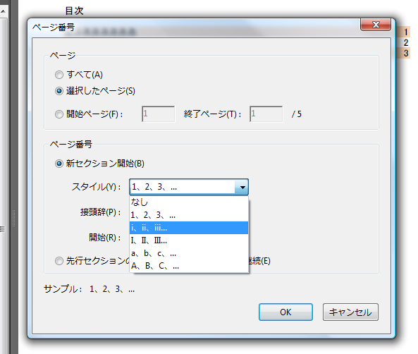 - 以下の様に、目次のページと中身のページが別な書式で1からカウントされるようになります。
