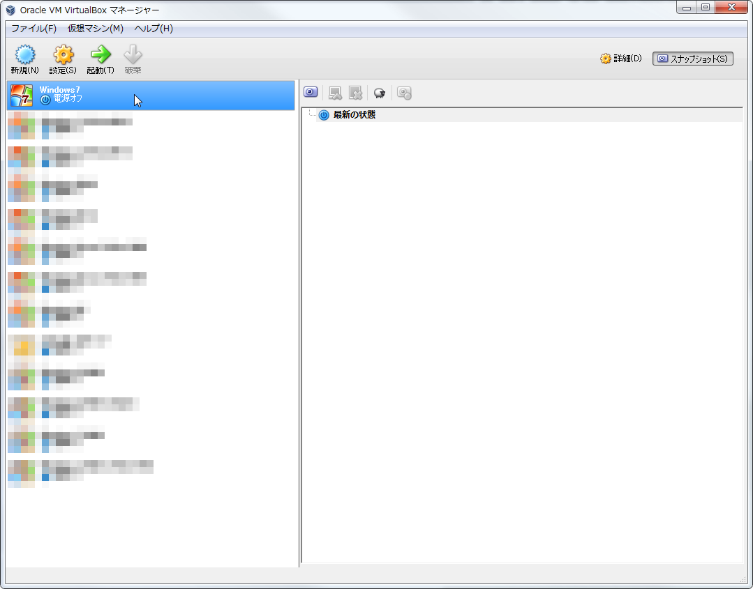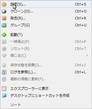 - WindowsXPをインストールした仮想環境を右クリックします。