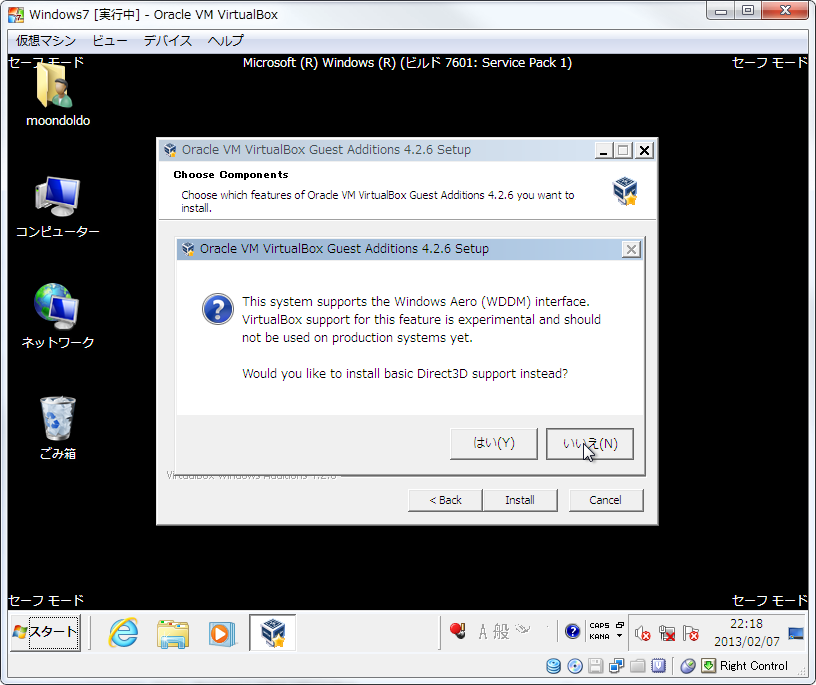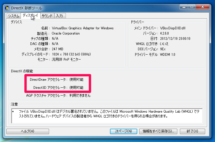 仮想環境のWindows7でDirect3DとAero(WDDM)を有効にする†