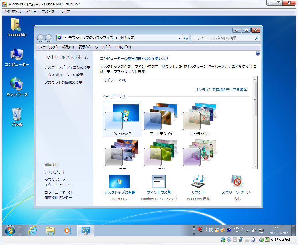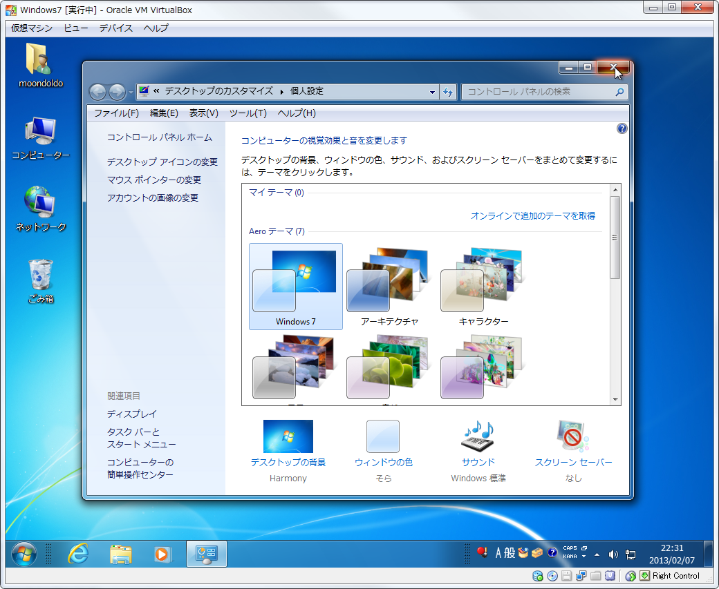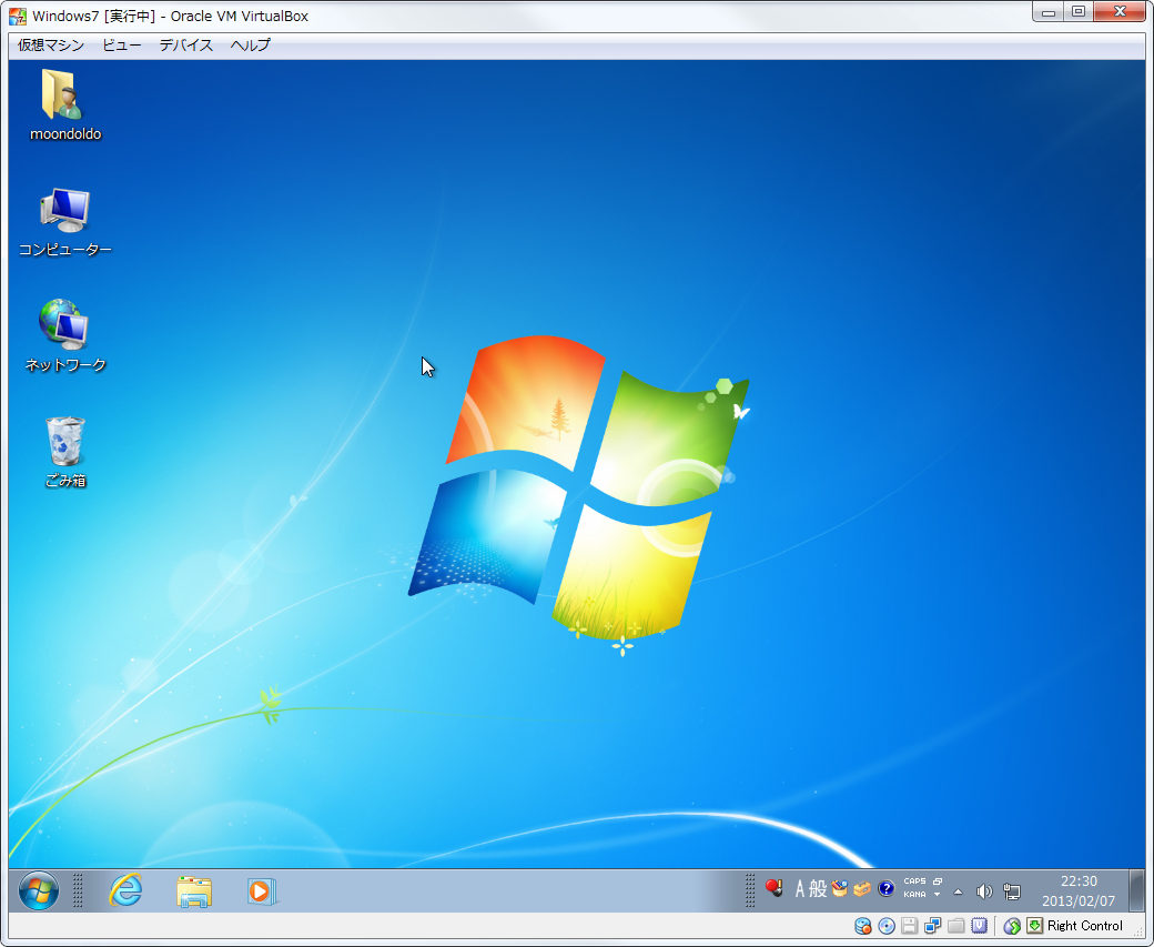 ※仮想環境の画面からマウスカーソルを取り出すにはキーボード右側の[Ctrl]キーを押します