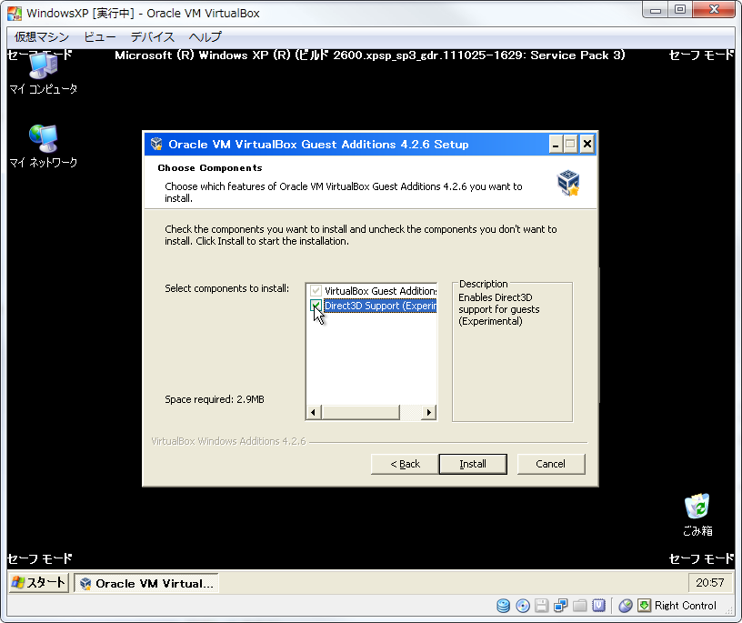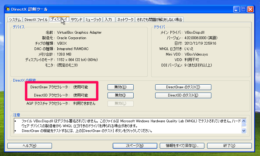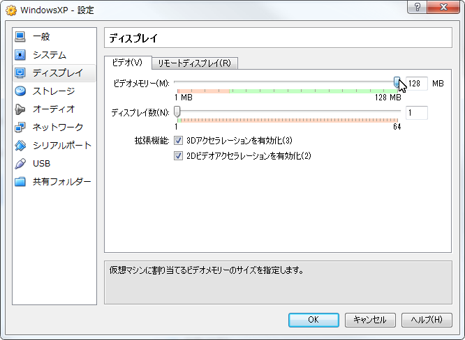 仮想環境のWindowsXPでDirect3Dを有効にする†