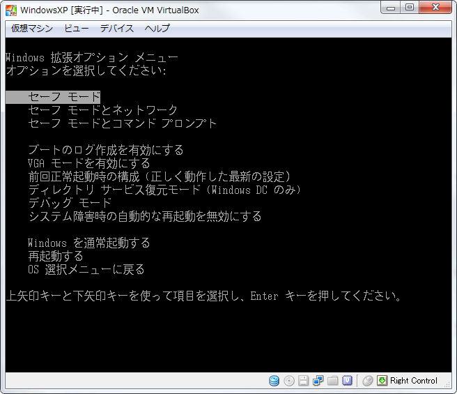 - [↑][↓]キーを押してセーフモードを選択し、[Enter]キーを押して起動します。