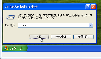 - [dxdiag] と入力して [OK] ボタンをクリックします。