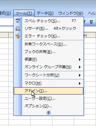 - [ツール] メニューの [アドイン(I)] をクリック