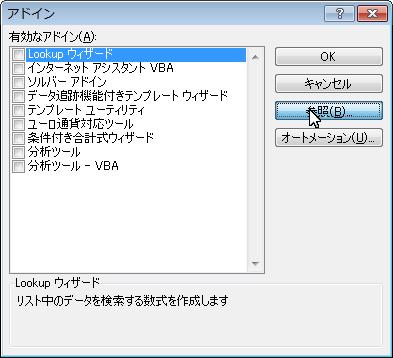 - 「アドイン」ウインドウの[参照(B)]ボタンを押す