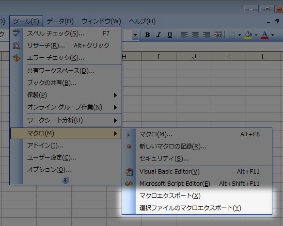 - [ツール(T)]→[マクロ(M)]に[VBAマクロのモジュールをエクスポート(X)]として表示されます