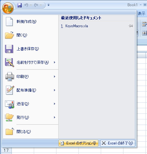 - [Officeボタン](左上のアイコン)→[Excelのオプション]ボタンを押す