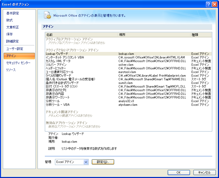 インストール方法(Excel2007)†