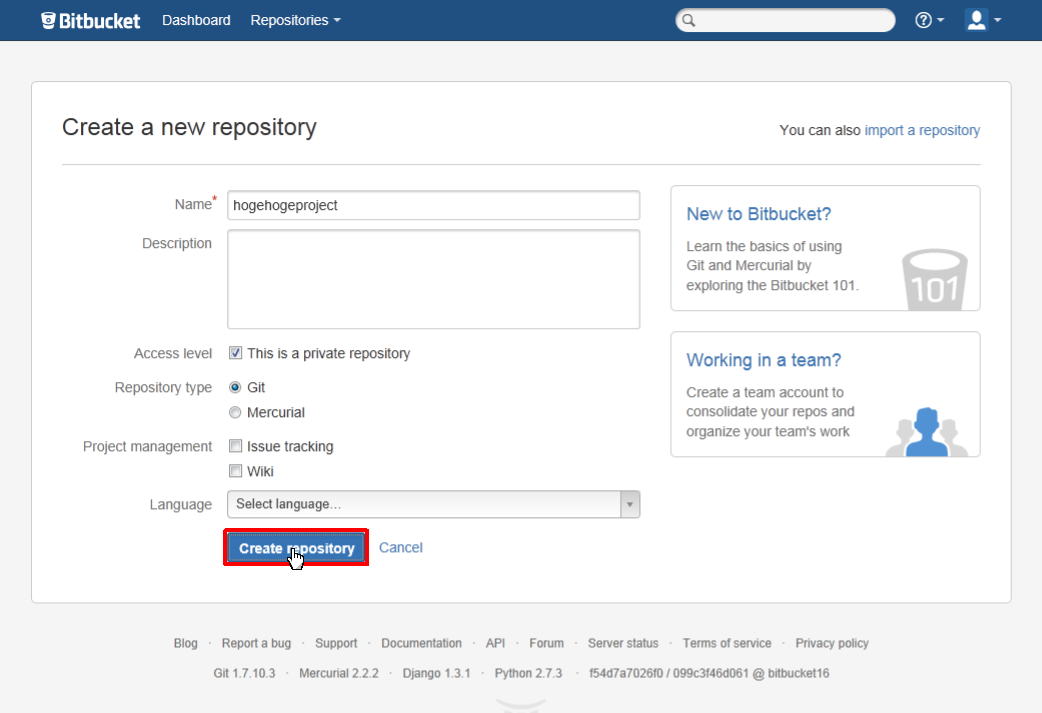 #ref(): File not found: "BitbucketCreateRepository010.png" at page "Git/Bitbucketのリモートリポジトリを使う"