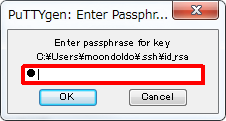 - Putty形式の秘密鍵(*.ppk)が作成されます