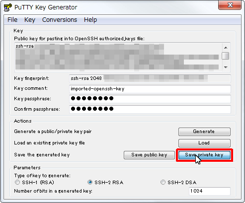 2.OpenSSHの秘密鍵からPutty形式の秘密鍵を作成†