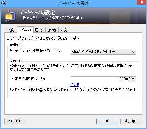 - 「変換鍵」の項の「キー変換の繰り返し回数」を4000000回以上に