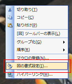 - 図を右クリック→[サイズとプロパティ]