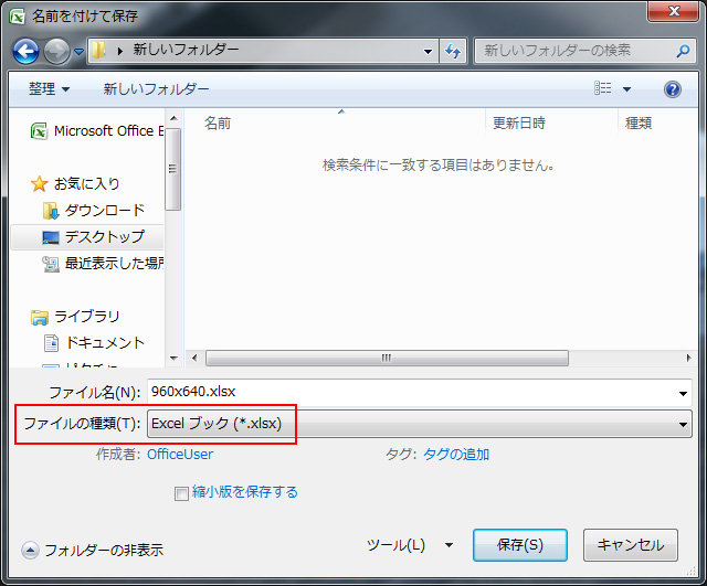 Excel 2007-2010 ブック (*.xlsx) の場合†