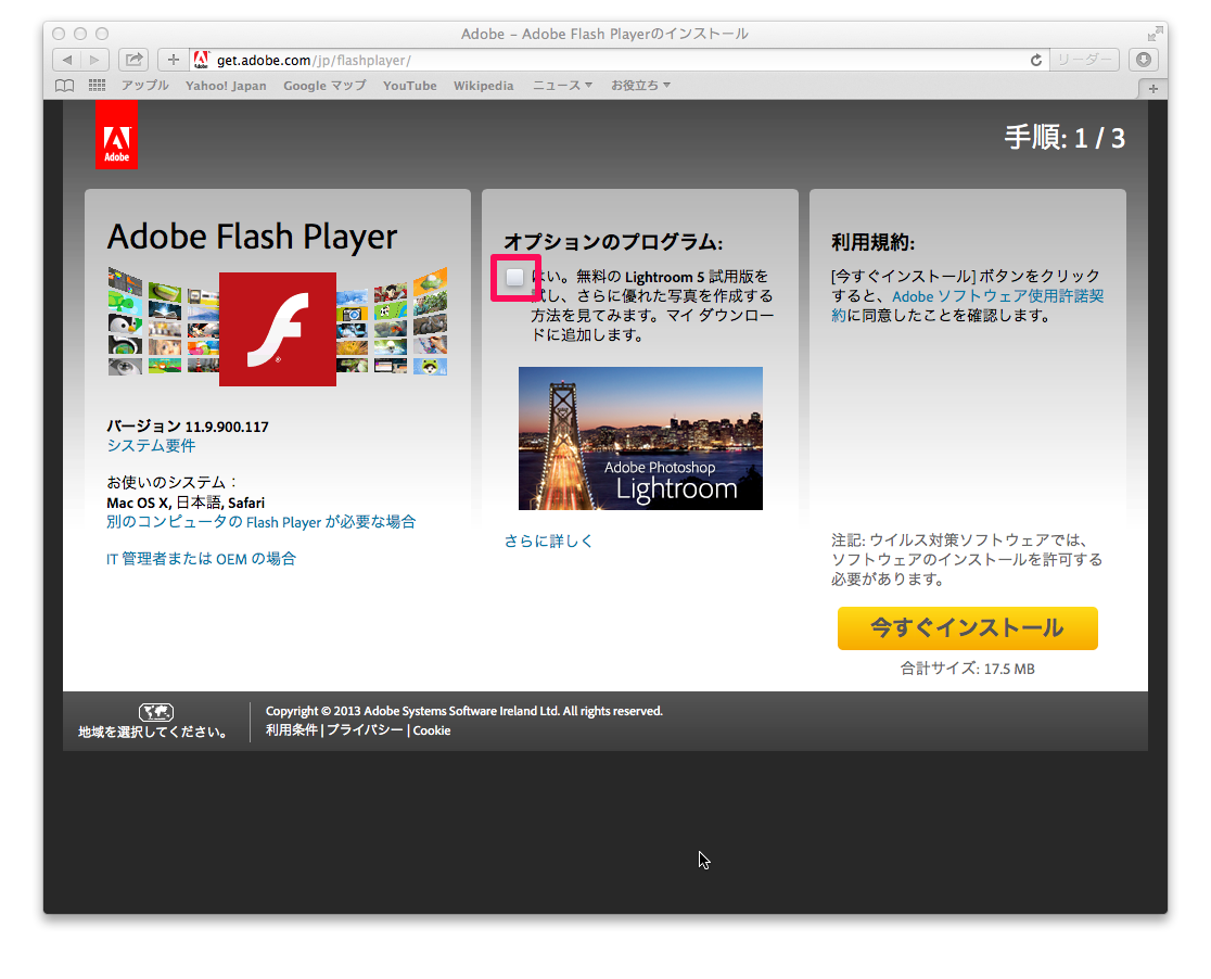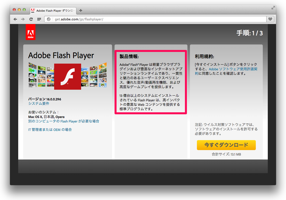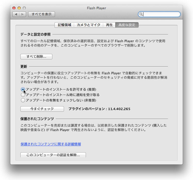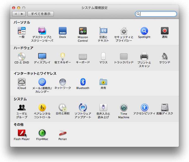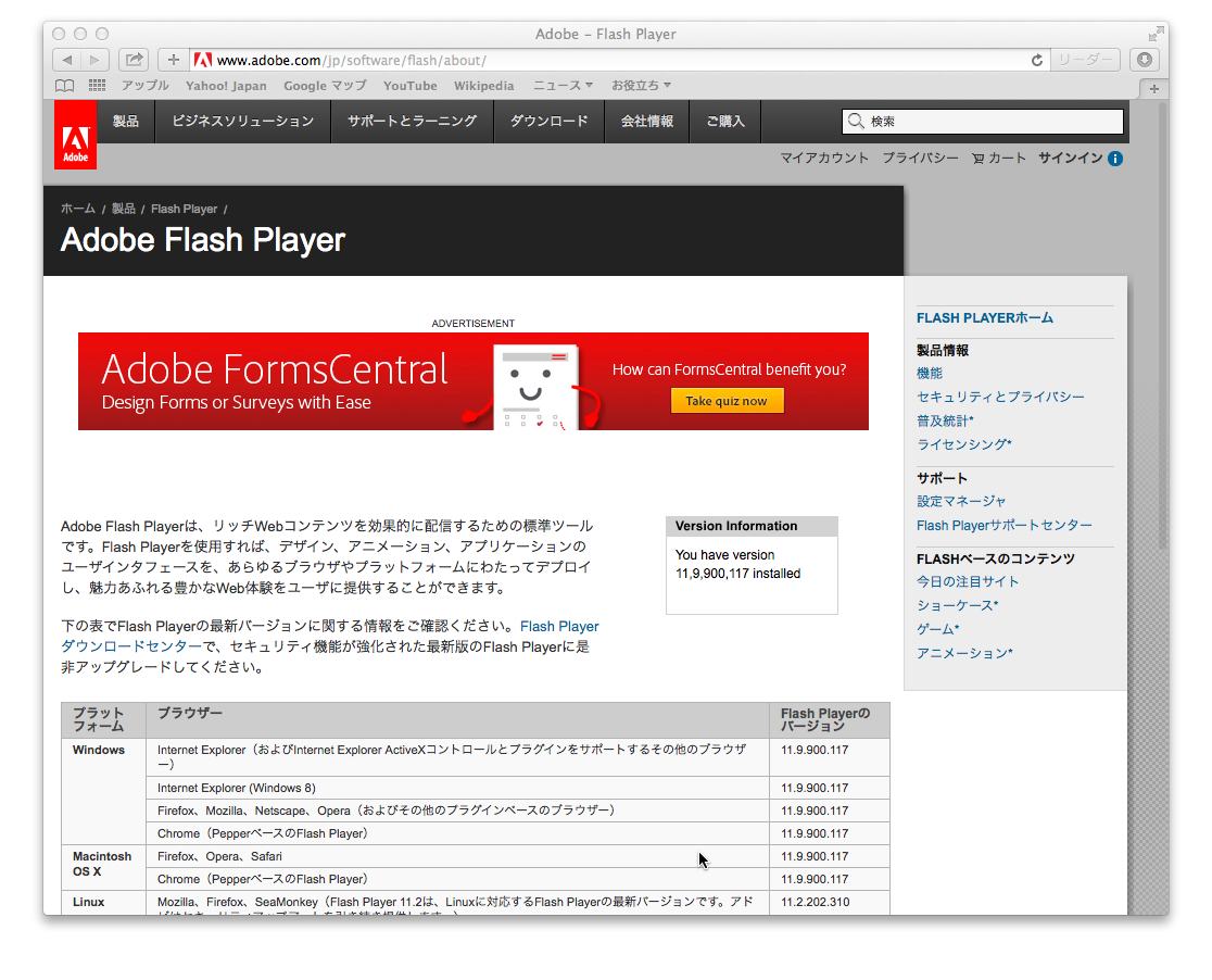 Mac OS XのAdobe Flash Playerは大きく分けて2種類存在します。