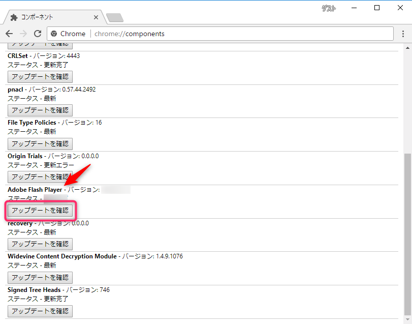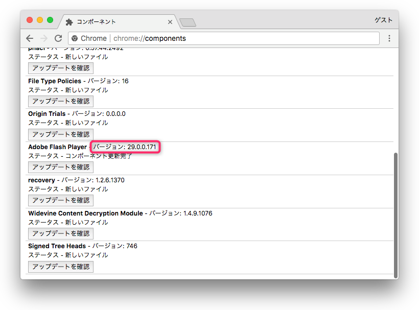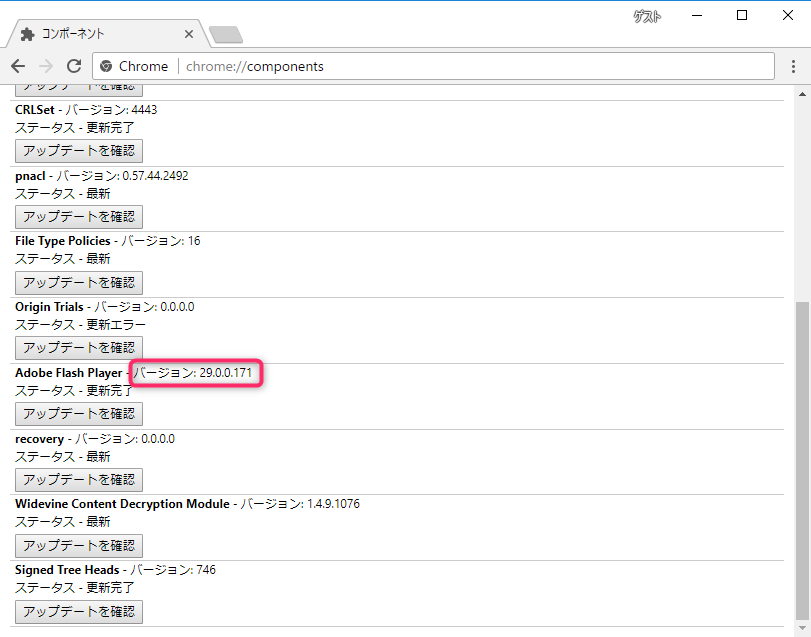 Google ChromeはFlash Pluginを内蔵しているので、Chromeのアップデートを行えばFlashもアップデートされます。
