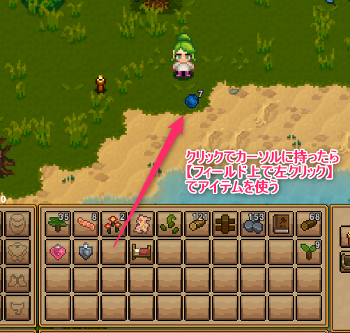 【クリックでアイテムを持ち、フィールド上で左クリック】で使う事が出来ます