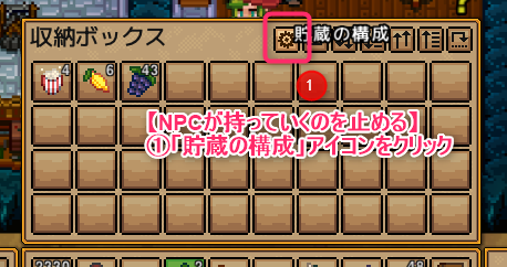 住民(NPC)が収納ボックスを扱える設定にした場合、同時に「貯蔵の構成」を行えます