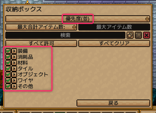 これは指定したアイテムを住民(NPC)が貯蔵する様になります、優先度も指定できます