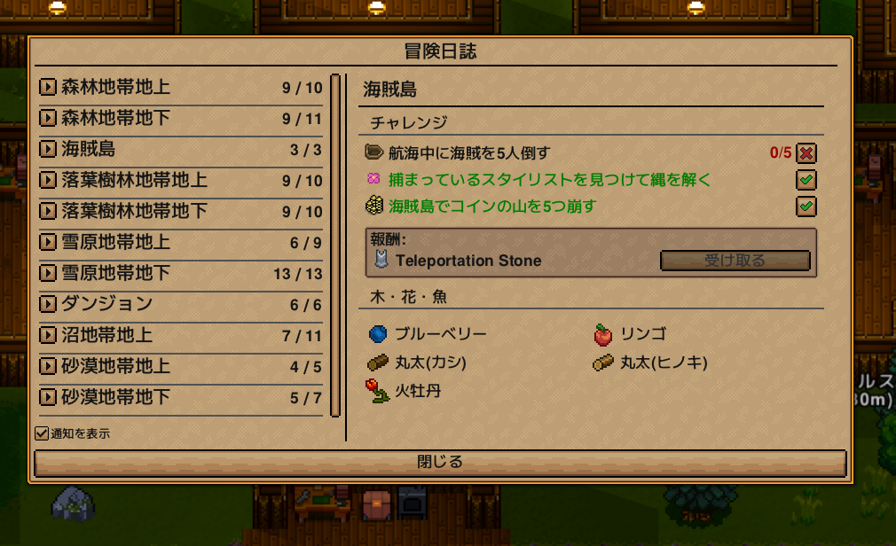 冒険日誌「海賊島」のチャレンジ「航海中に海賊を5人倒す」条件