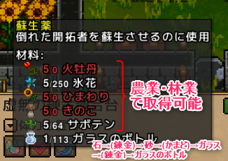 ※燃料のスロットを空にすると、住民(NPC)が「氷花」を10個入れてくれる事を確認