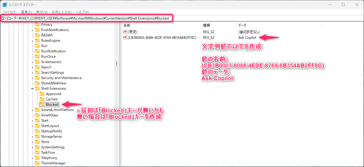 HKEY_CURRENT_USER\Software\Microsoft\Windows\CurrentVersion\Shell Extensions\Blocked