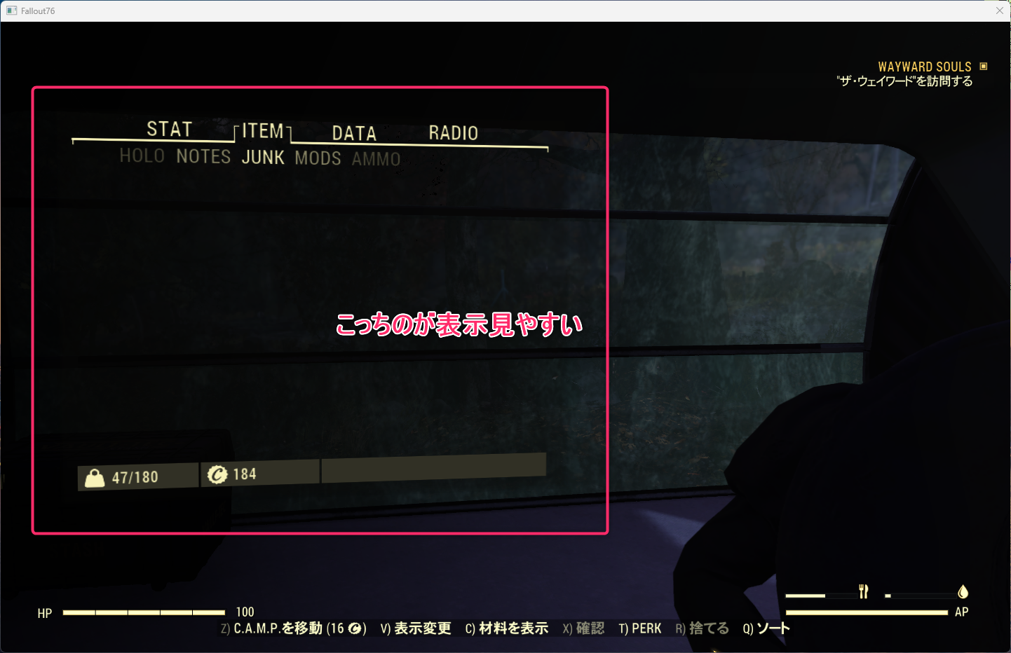 [Tab]キーで端末(Pip-Boy)が表示される