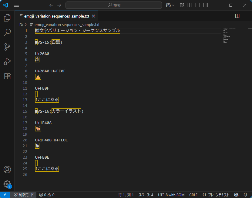 絵文字バリエーション・シーケンスサンプルのテキストファイルを置いておきます