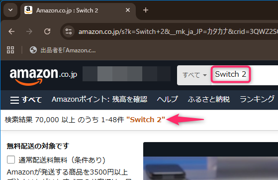 結論としては、Amazonの検索結果が表示されたURLの後ろに